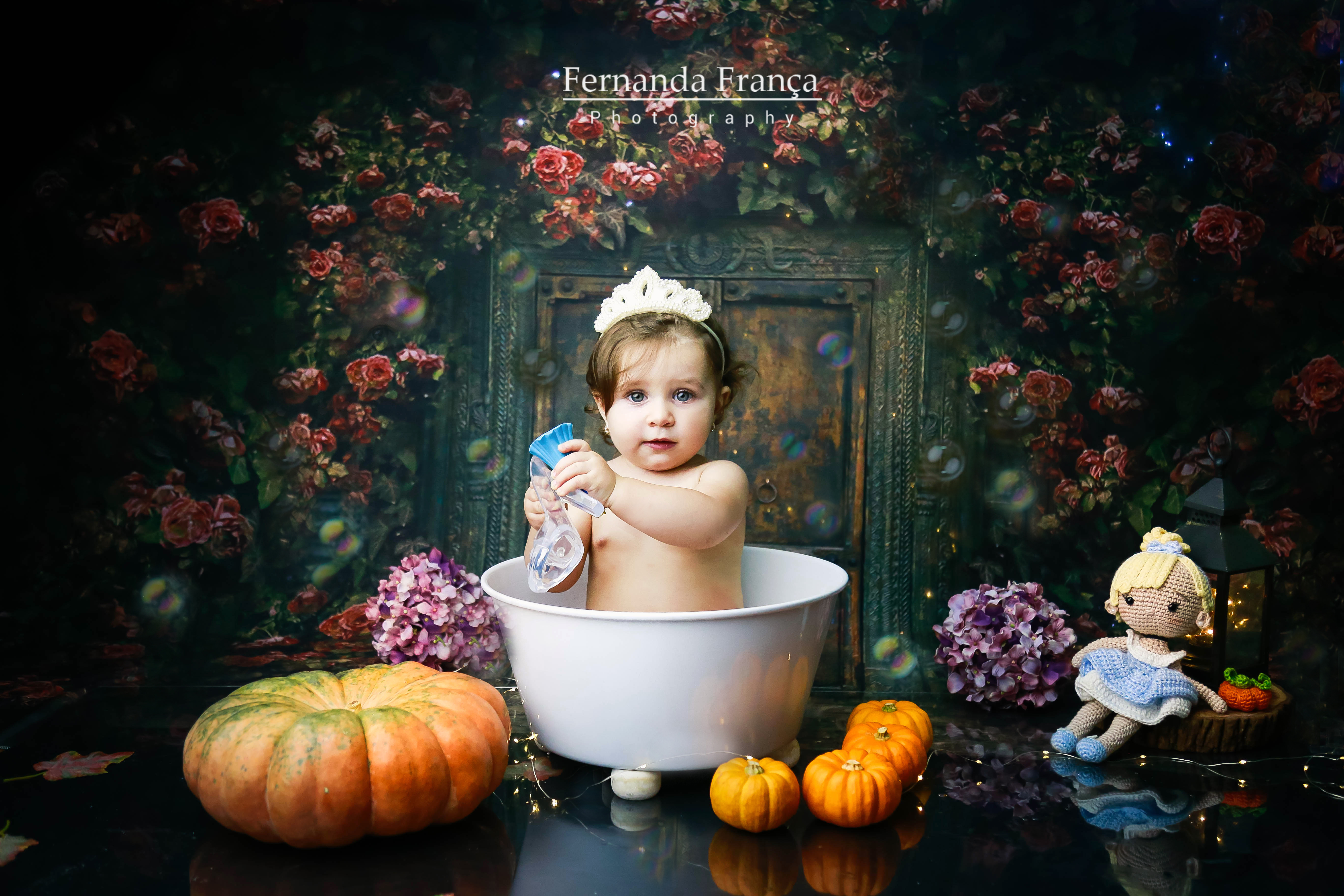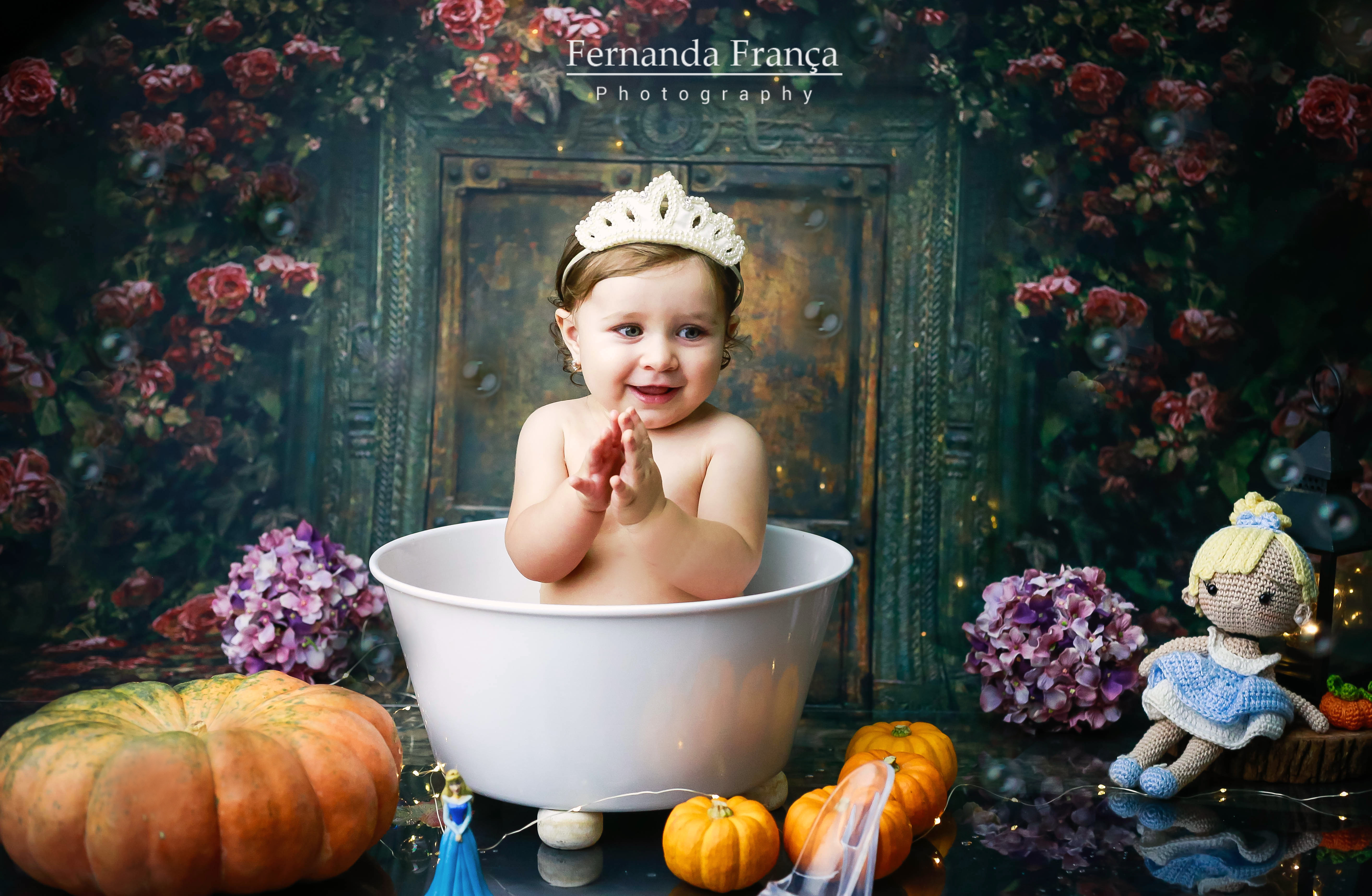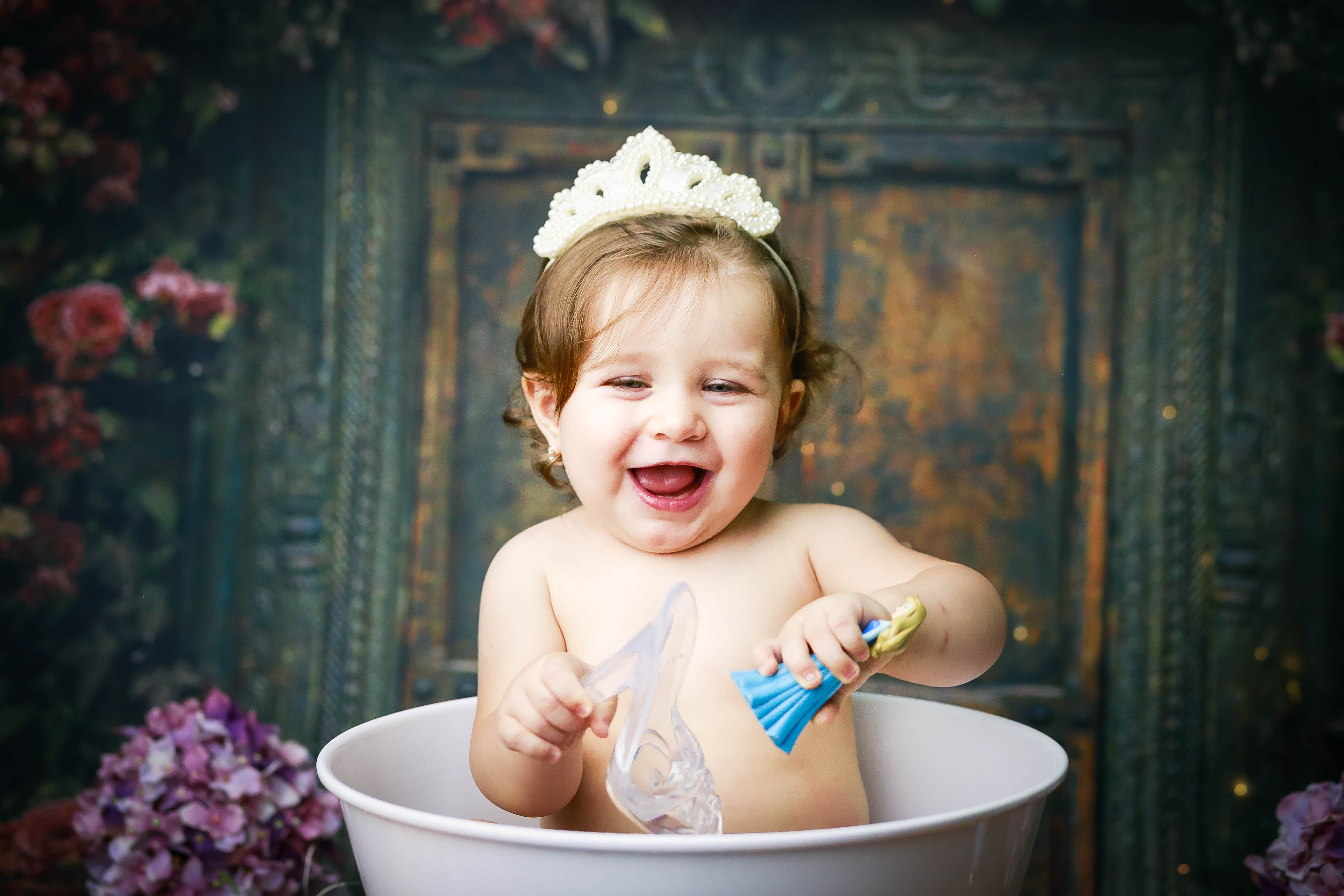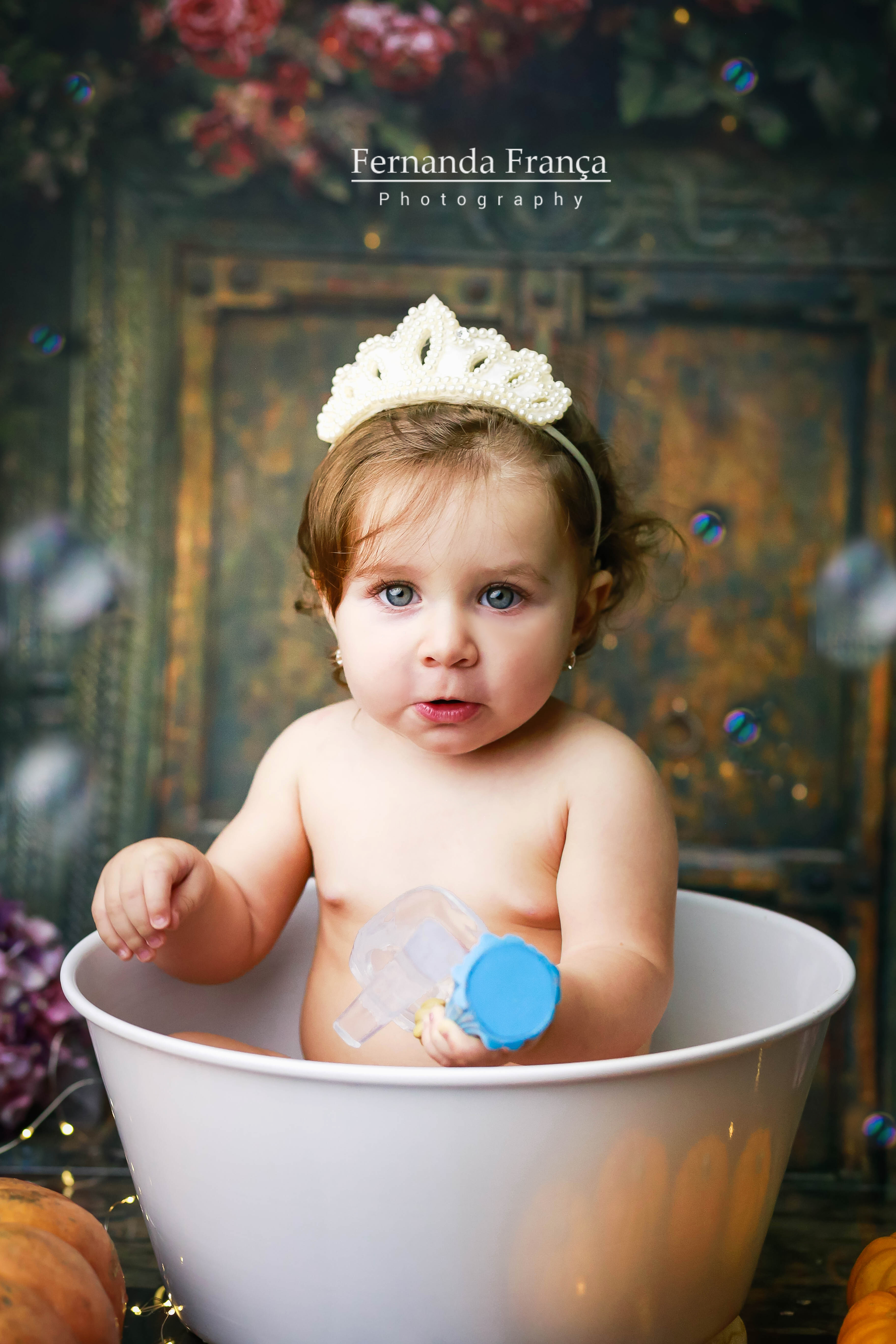 Pensa em uma bebê linda, simpática, sorridente e que curtiu muuuito o ensaio? A Maria Clara ficou toda linda de Cinderela e amou o banho!!
