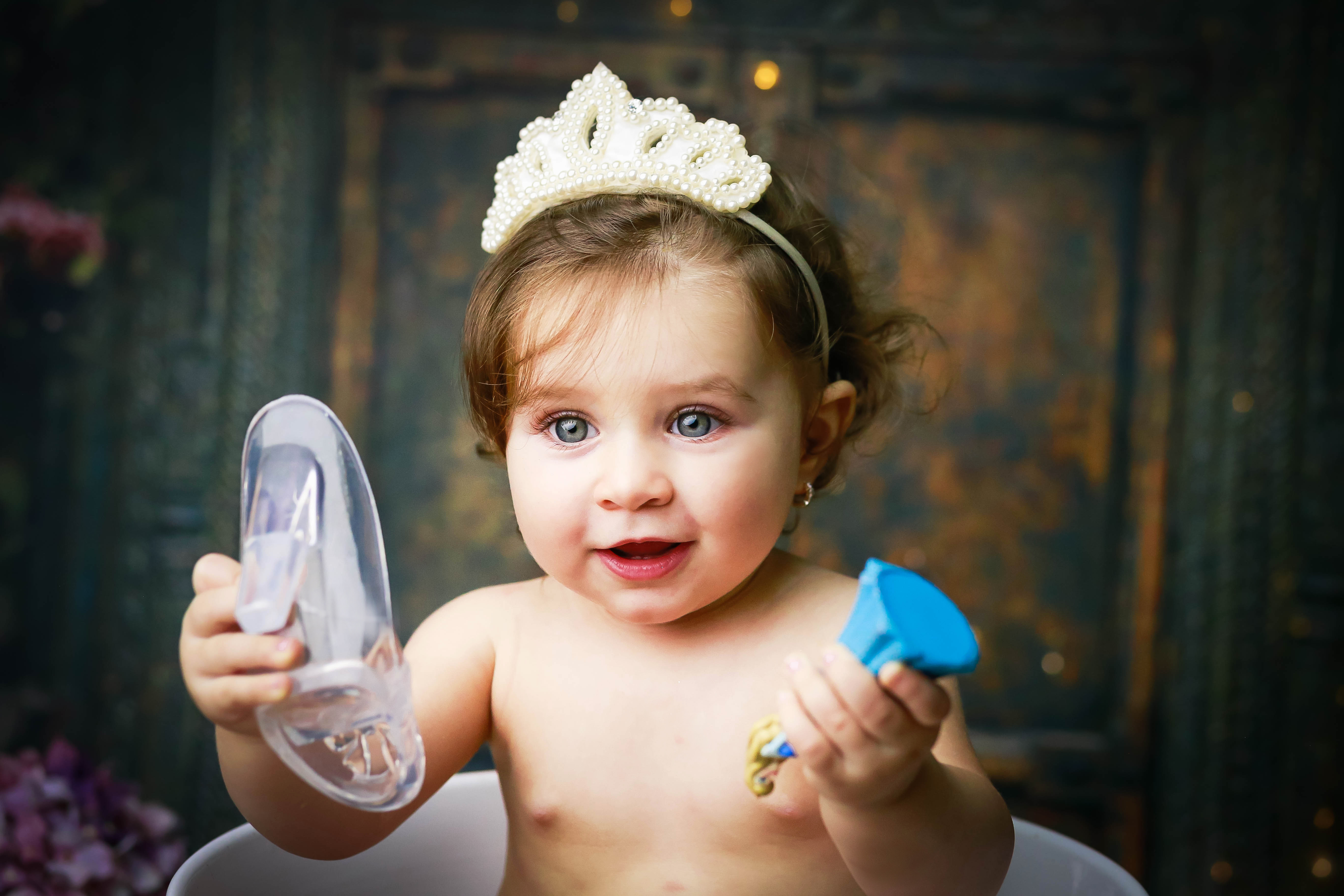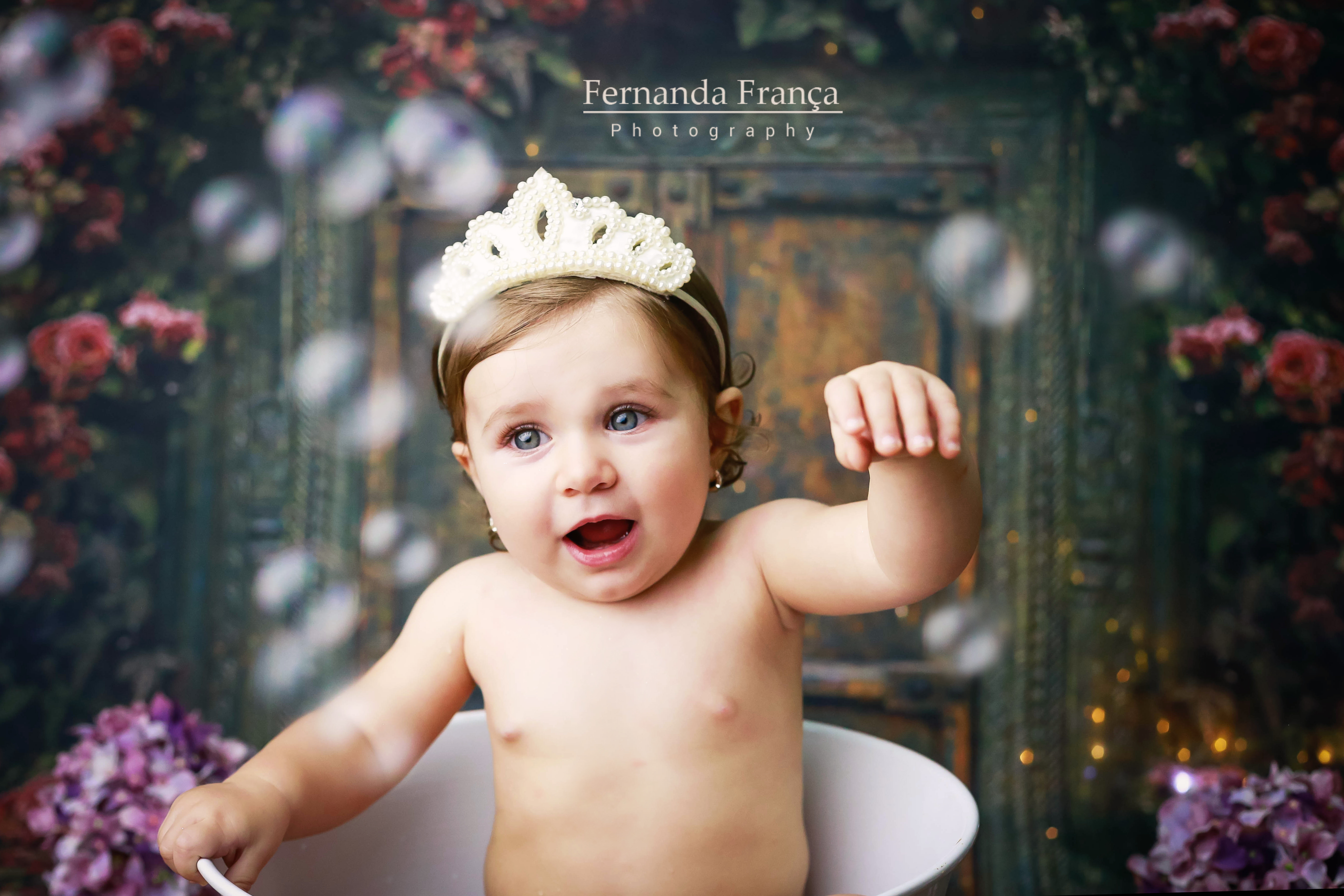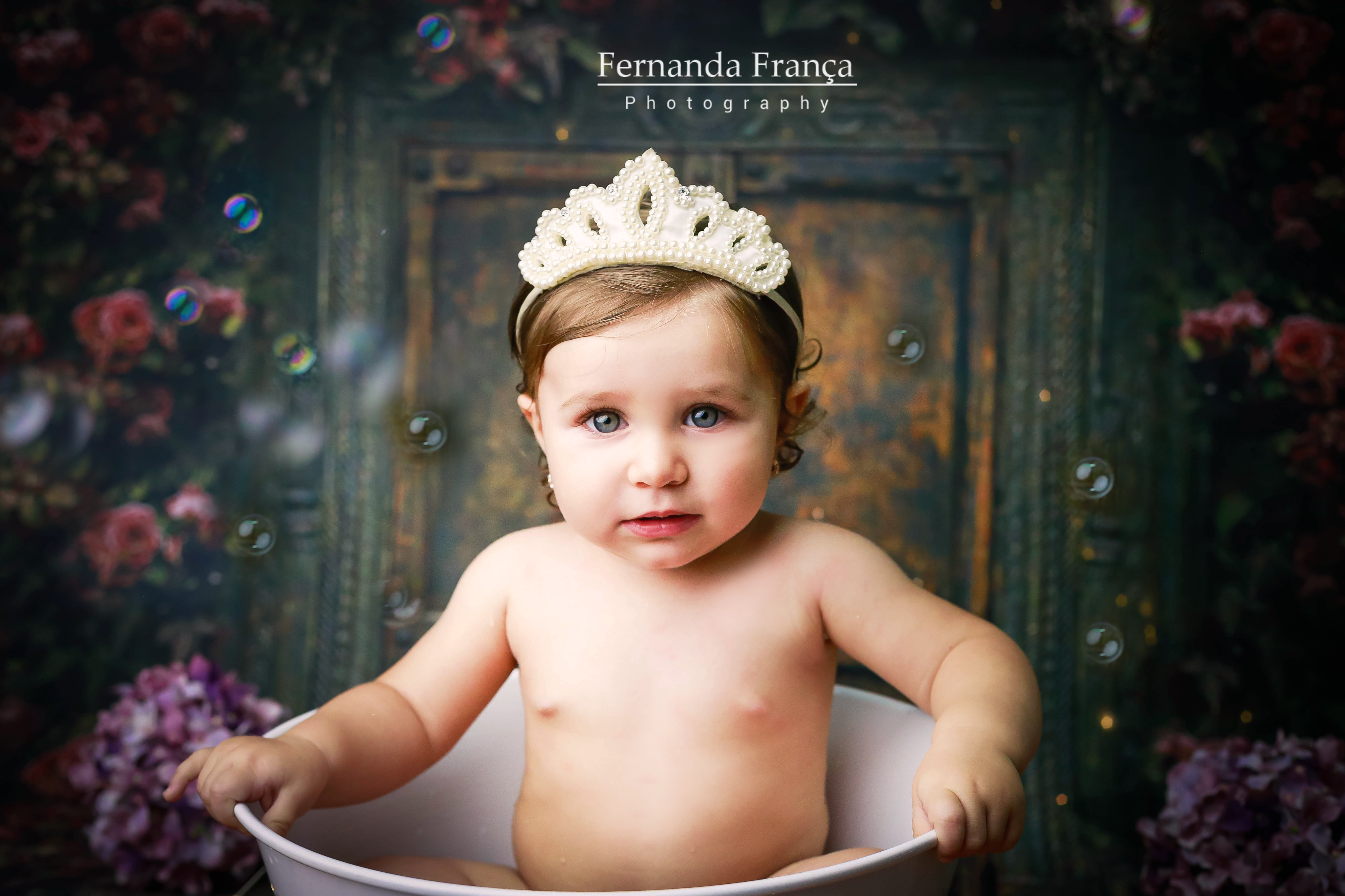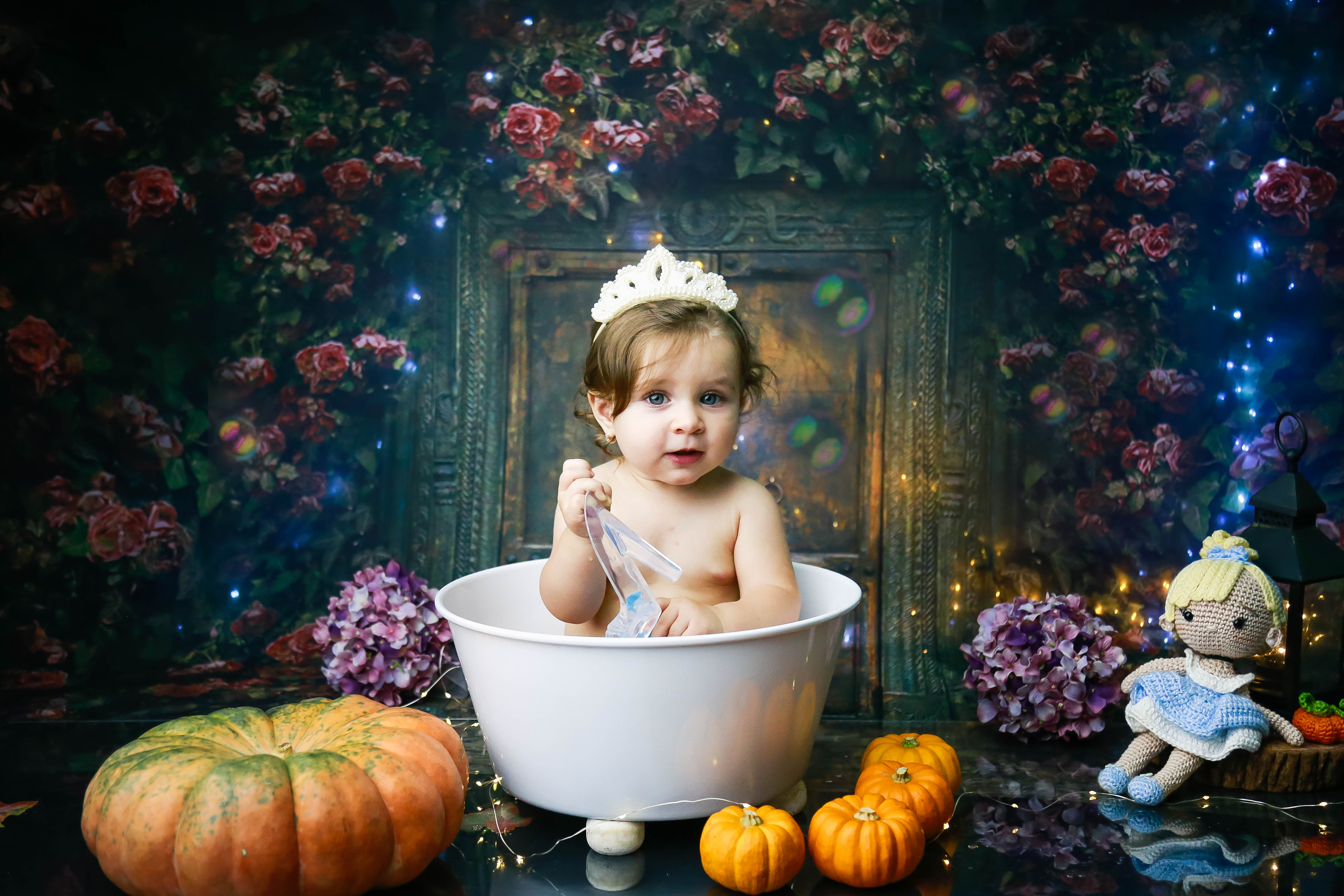 Pensa em uma bebê linda, simpática, sorridente e que curtiu muuuito o ensaio? A Maria Clara ficou toda linda de Cinderela e amou o banho!!