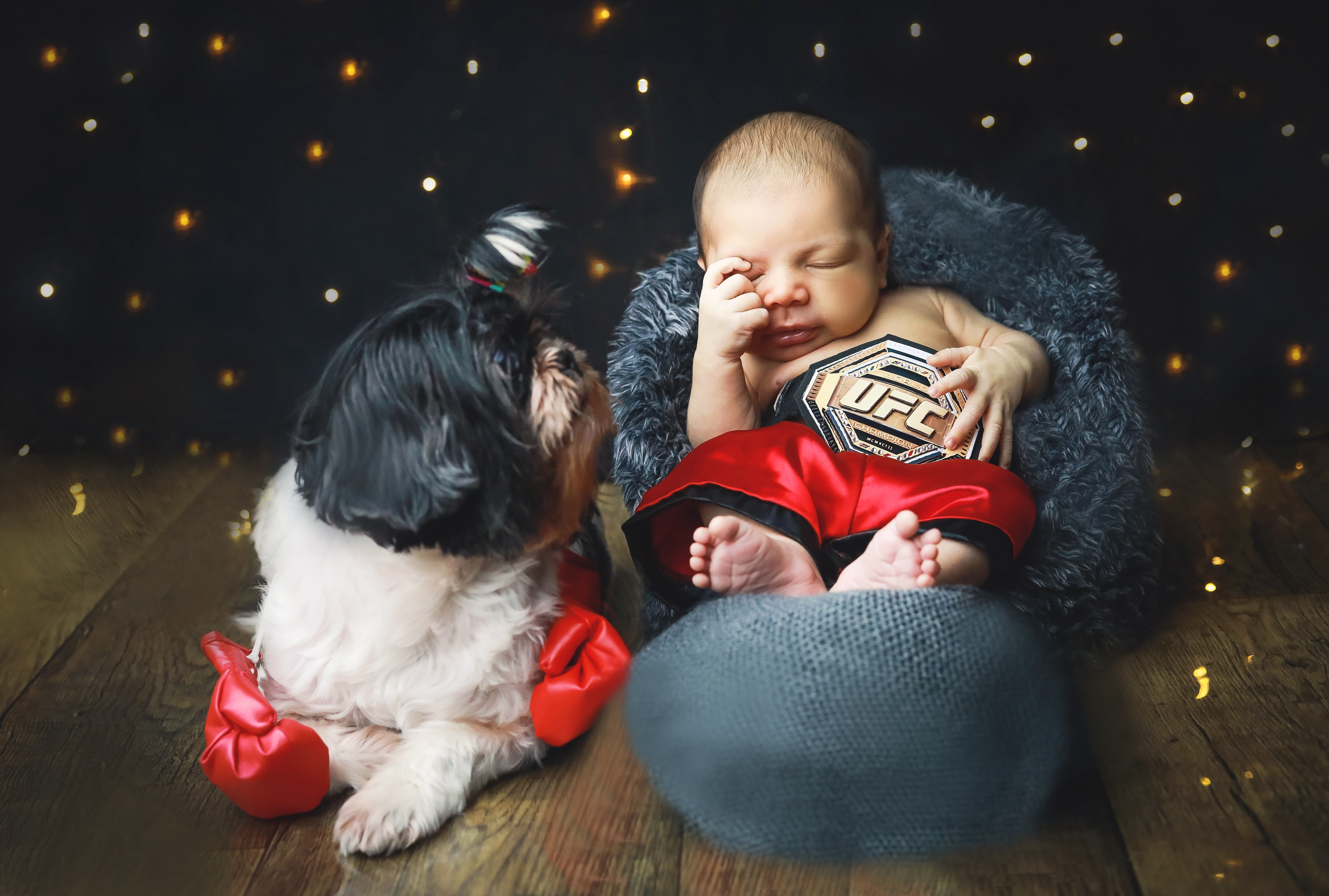 Rômulo, em seus primeiros dias, com a aparticipação da pet e com direito a cenário do time do coração do papai!!!